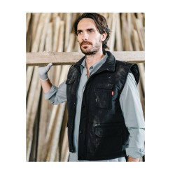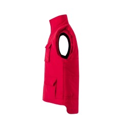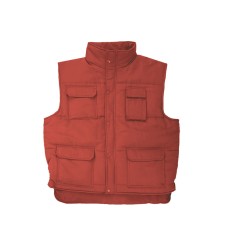 Bodywarmer matelassé. Rabat central avec boutons-pression. Taille élastiquée. Empiècement coupe-vent aux emmanchures. 7 poches : 2 poches poitrine avec rabat et Velcro® dont 1 avec compartiment pour stylos, 2 poches frontales avec rabat et Velcro® et en dessous de chacune 2 poches latérales, 1 poche intérieure.