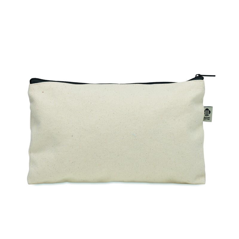 Pochette à cosmétiques en coton biologique avec fermeture éclair colorée. 340 gr/m².