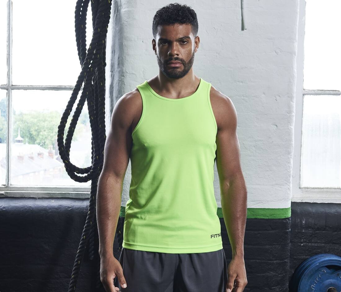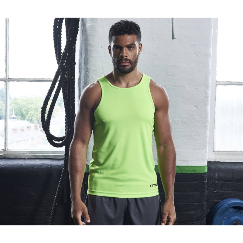 Débardeur homme en 100% polyester Neoteric™, matière légère texturée avec propriétés respirantes et facilitant l'évaporation de la transpiration. Coupe sportive. Protection UPF 30+UV.