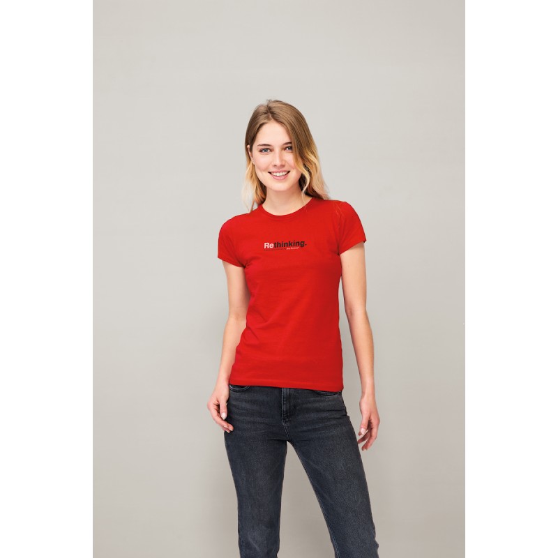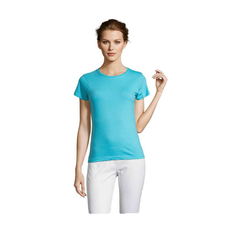 SOL'S MISS, TEE-SHIRT FEMME, 100% coton semi-peigné Ringspun Jersey 150, Bande de propreté au col, Encolure jersey, Manches courtes, Coupe cintrée, Coupé cousu, (1) Gris chiné : 85 % coton / 15 % viscose. Pour la correspondance des tailles, veuillez vous référer au size chart dans la documentation produit.