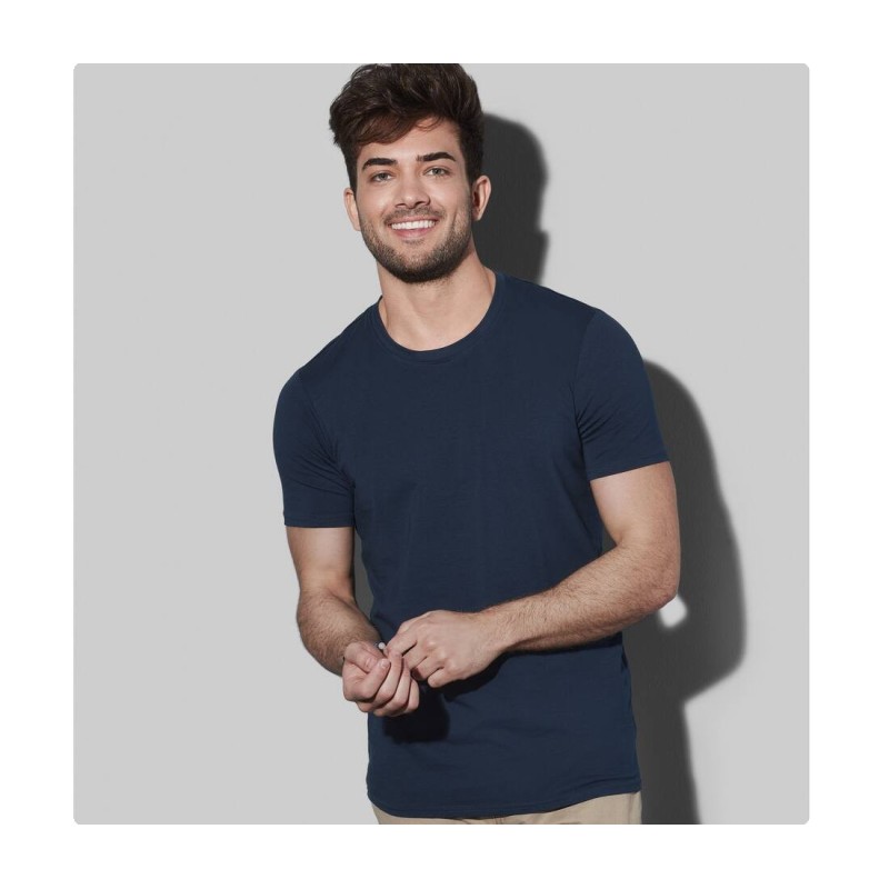 ·170 g/m² ·95% coton ringspun peigné, 5% élasthanne ·Grey Heather: 84% coton, 14% viscose, 4% élasthanne ·bord côte au col ·bande de propreté contrastée au cou ·coutures épaules renforcées ·bords manches étroits ·coutures latérales ·modèle cintré