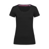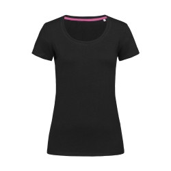 ·170 g/m² ·95% coton ringspun peigné, 5% élasthanne ·Grey Heather: 84% coton, 14% viscose, 4% élasthanne ·large col ·bord côte fin au col ·bande de propreté contrastée ·coutures renforcées aux épaules ·petites manches avec bord côte étroit ·coutures latérales ·cintré