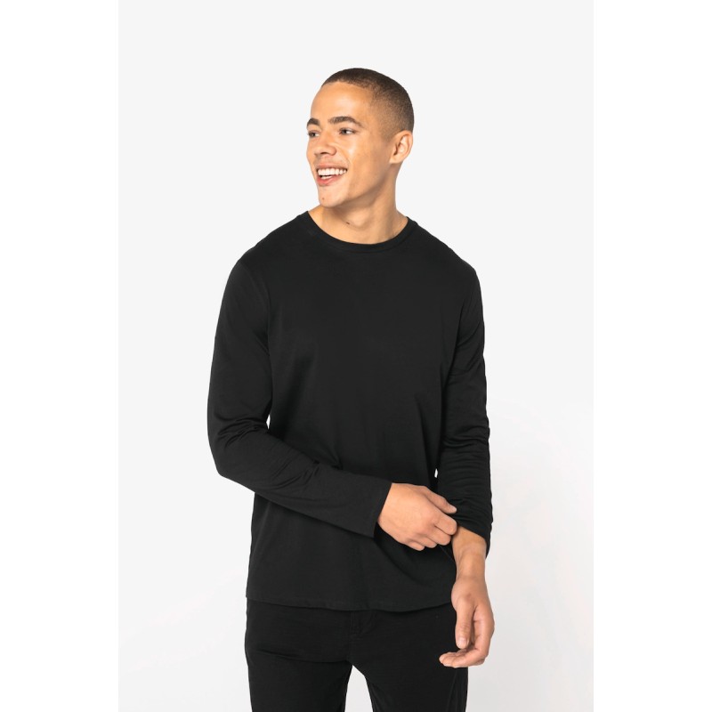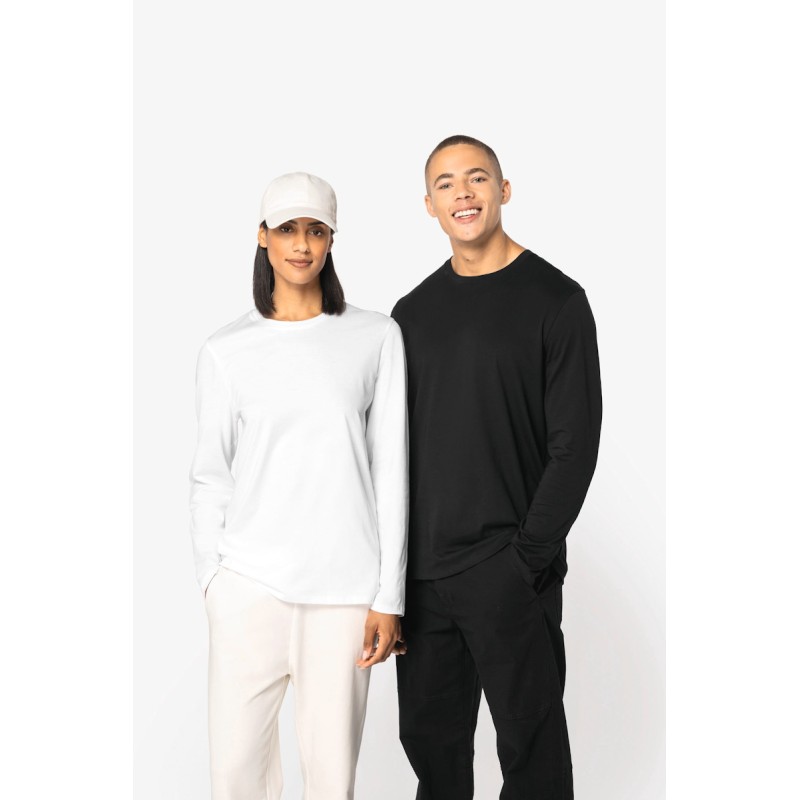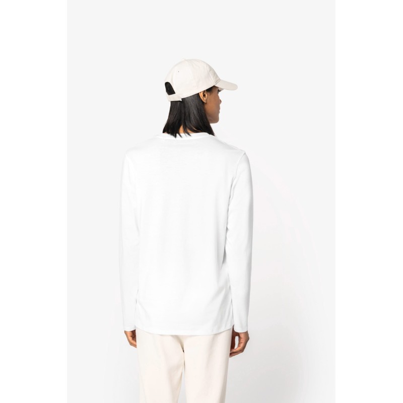 100% coton biologique. Coton peigné. Coupe ajustée. Lavé aux enzymes. Bord côte col 1 x 1. Finition intérieur col avec bande de propreté en matière principale ton sur ton. Renfort épaule en matière principale. Ourlet double surpiqûre bas de manches et bas de vêtement.