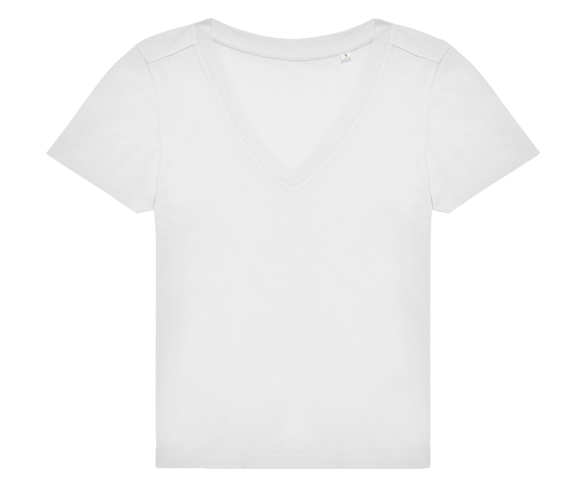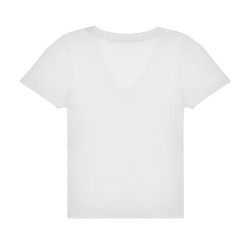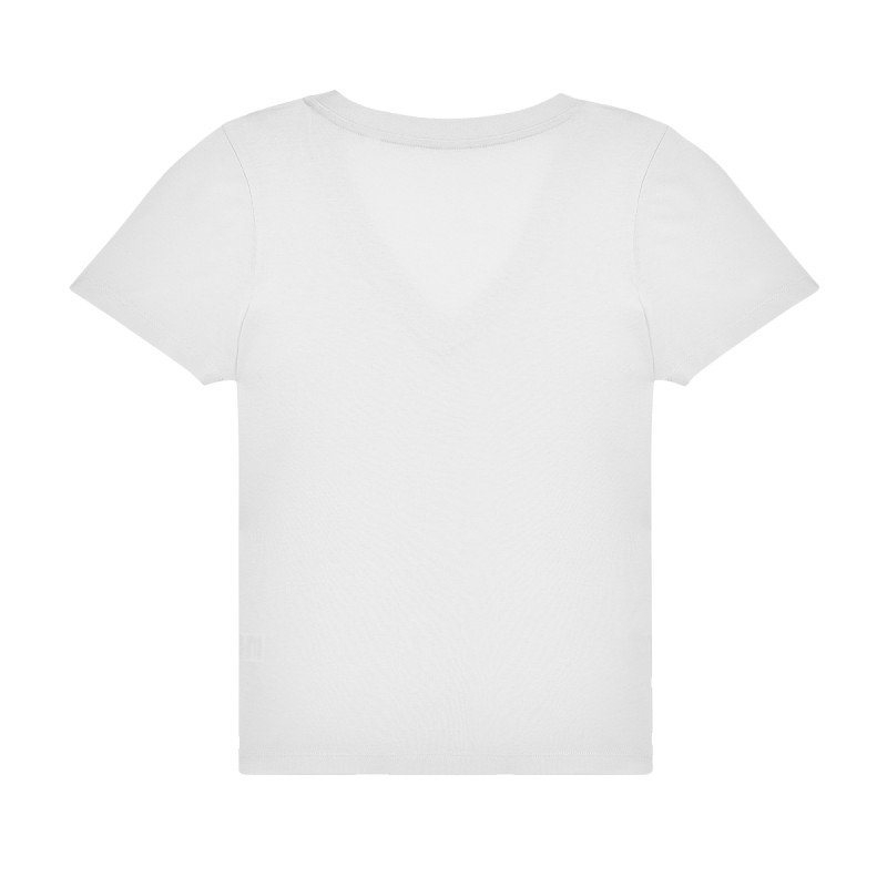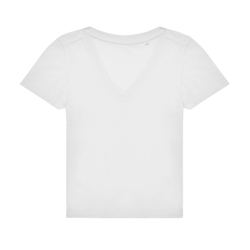 Coutures latérales. Col féminin en V. Bande de propreté au col. Matière résistante et douce.