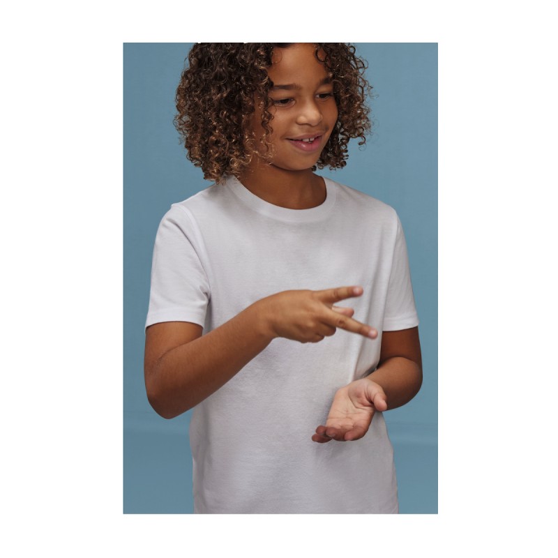 Modèle unisexe. Coupe tubulaire. Col en bord côte fin. Bande de propreté à l'arrière du col.