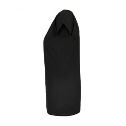 Coupe ample. Large encolure pouvant s'étirer sur une épaule. Bouts de manches retournés.