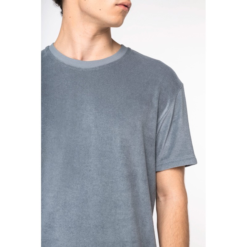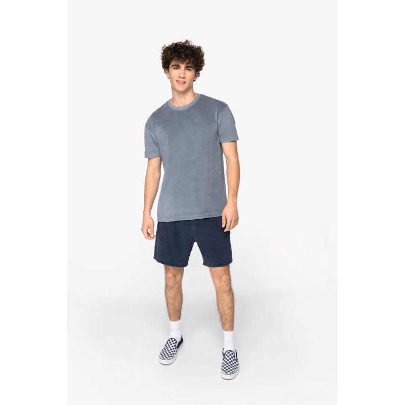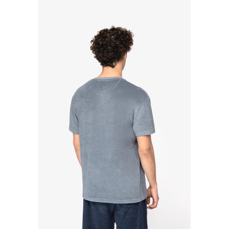 80% coton biologique / 20% polyester recyclé post-consumer. Fabriqué au Portugal. Coton peigné. Tissu éponge. Produit lavé aux enzymes. Coupe ajustée. Finition encolure bande de propreté en chevrons ton sur ton. Col en bord côte 1x1. Renfort épaules. Finition bas de manches et de vêtement double surpiqûre. Demi-lune au dos.