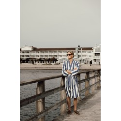 Apportez ce peignoir de hammam doux et confortable à la plage ou profitez-en simplement à la maison. Fabriqué dans un mélange léger et aéré de 200 g/m², il allie le confort du coton aux avantages du séchage rapide du polyester. Conçu dans un style classique avec un motif rayé bicolore, il présente un col soigné, des poches sur le devant, des manches 3/4 et une ceinture à la taille pour un ajustement parfait. Certifié par GRS (Global Recycled Standard), la certification GRS garantit que l'ensemble de la chaîne d'approvisionnement des matériaux recyclés est certifiée. Le contenu recyclé total est basé sur le poids total du produit. Ce produit contient 69 % de coton recyclé certifié GRS et 29 % de polyester recyclé certifié GRS.