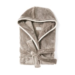 Robe de chambre douillette et douce en peluche de luxe avec grande capuche et passepoil décoratif. Deux poches à l'avant et ceinture à la taille. La robe de chambre est fabriquée à partir de 68 % de matériaux recyclés vérifiés. Comme nous n'aimons pas transporter de l'air, nous avons choisi de mettre sous vide cette robe de chambre pour réduire notre empreinte carbone. Fabriqué selon la norme GRS (Global Recycled Standard) La certification GRS garantit que toute la chaîne d'approvisionnement des matériaux recyclés est certifiée. Le contenu recyclé total est basé sur le poids total du produit. Taille L/XL. OEKO-TEX® STANDARD 100. 19.HCN.76049. Hohenstein HTTI.