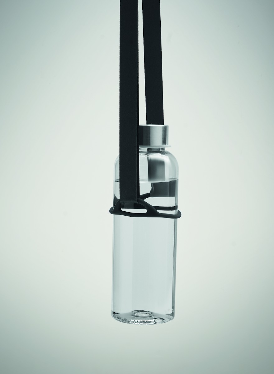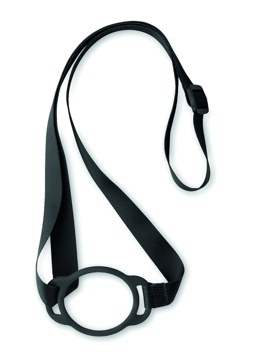 Lanyard avec porte-gobelet en silicone (6 cm de diamètre) et boucle réglable en PP. Lanyard de 20 mm de large.