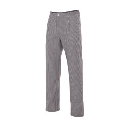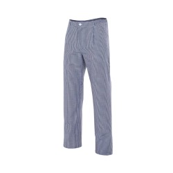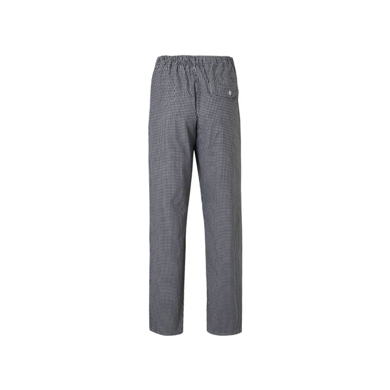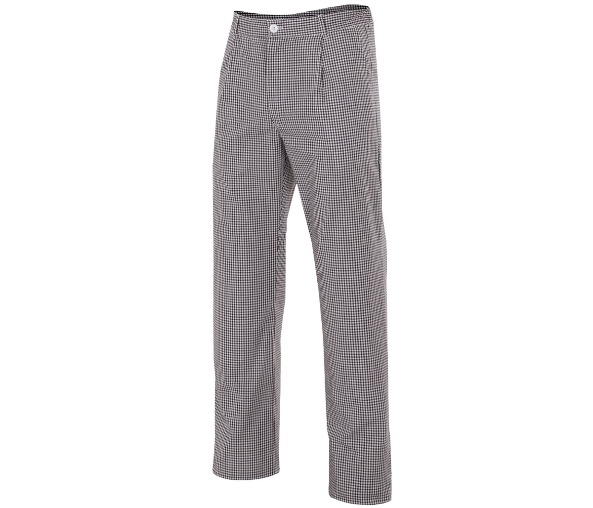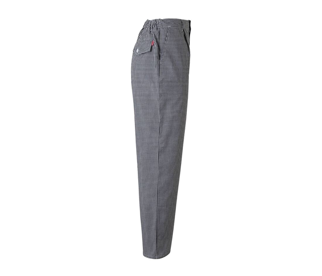 Fermeture à bouton avec braguette zippée. Tissu élastique. Pinces sur le devant. 3 poches : 2 poches latérales, 1 poche arrière avec rabat et bouton.