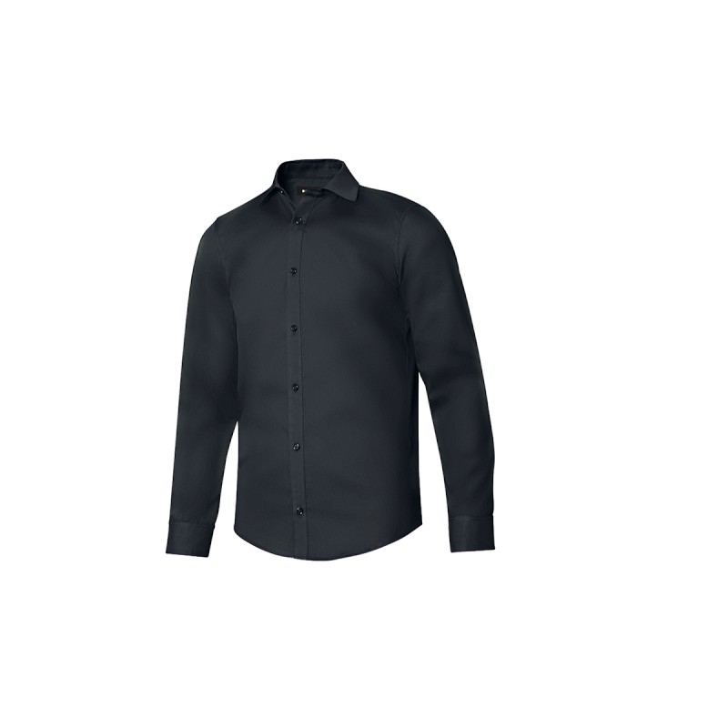 Fermeture boutonnée avec rabat. Col italien avec baleines. Empiècement dans le dos. Poignets boutonnés. Bouton de rechange.