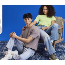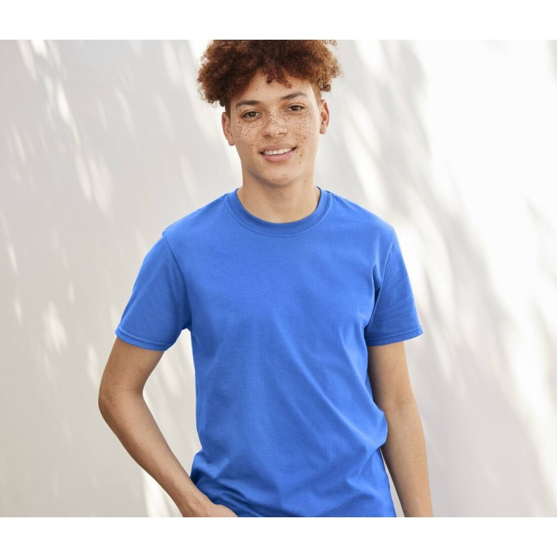 100% coton ring spun pré-rétréci (sauf RS Sport grey et Antique : 90% coton / 10% polyester et Heather : 35% coton / 65% polyester). Maille jersey. Bande de propreté d'épaule à épaule. Double surpiqûre aux manches et au bas du vêtement. Coupe tubulaire. Tissu tourné d'un quart de tour pour éliminer le pli central.