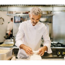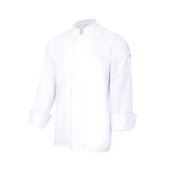 Fermeture par boutons pressions cachés. Col mao. Manches longues avec ouvertures aux poignets. Poche sur la manche gauche.