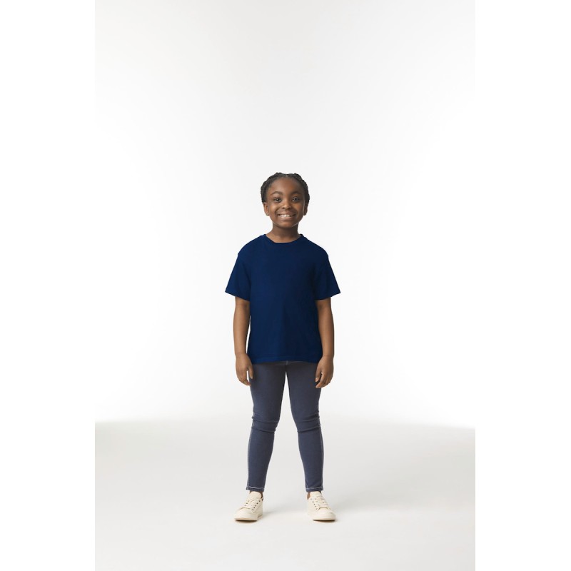 100% coton ring spun pré-rétréci Ring-Spun "Softstyle" (sauf RS Sport Grey : 90% coton / 10% polyester). Bande de propreté. Maille jersey. Double couture aux manches et au bas du vêtement. Conception tubulaire pour les tailles 7/8, 9/11 et 12/14 ans et coutures sur les côtés pour les tailles 3/4 et 5/6 ans. Coupe européenne.