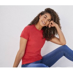 60% coton / 40% polyester. Fabriqué avec du coton rings-pun doux et un mélange de coton. Softstyle CVC possède un tissu à avec une densité élevée de points pour offrir une surface d'impression lisse. Le tissu rings-pun doux offre une sensation agréable contre la peau. Sans surpiqûre, largeur réduite, col avec bord-côte. Bande de propreté au cou et aux épaules pour plus de confort et de durabilité. Coupe A-line cintrée, Coutures latérales.