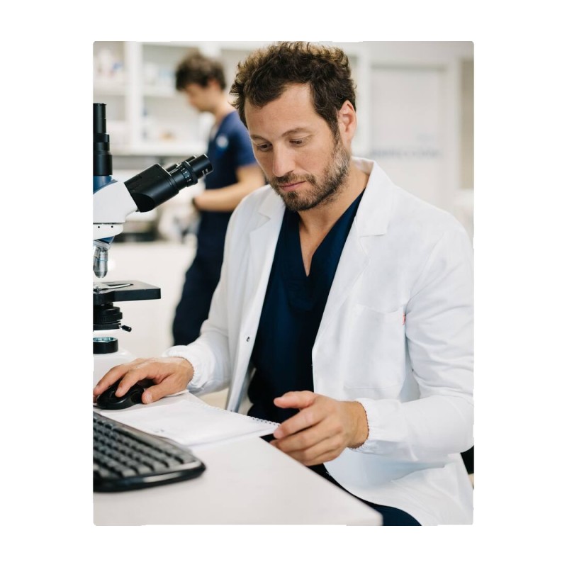 Fermeture par boutons pression. Boutons cachés par un rabat. Poignets élastiqués. Fentes à l'arrière. 3 poches plaquées.