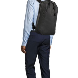 Compartiment principal zippé avec double poche intérieure Compartiment devant fermé par cordon Bretelles réglables en coton Dos renfort matelassé