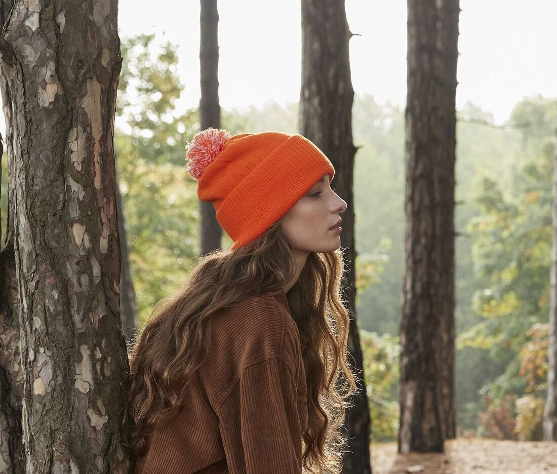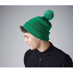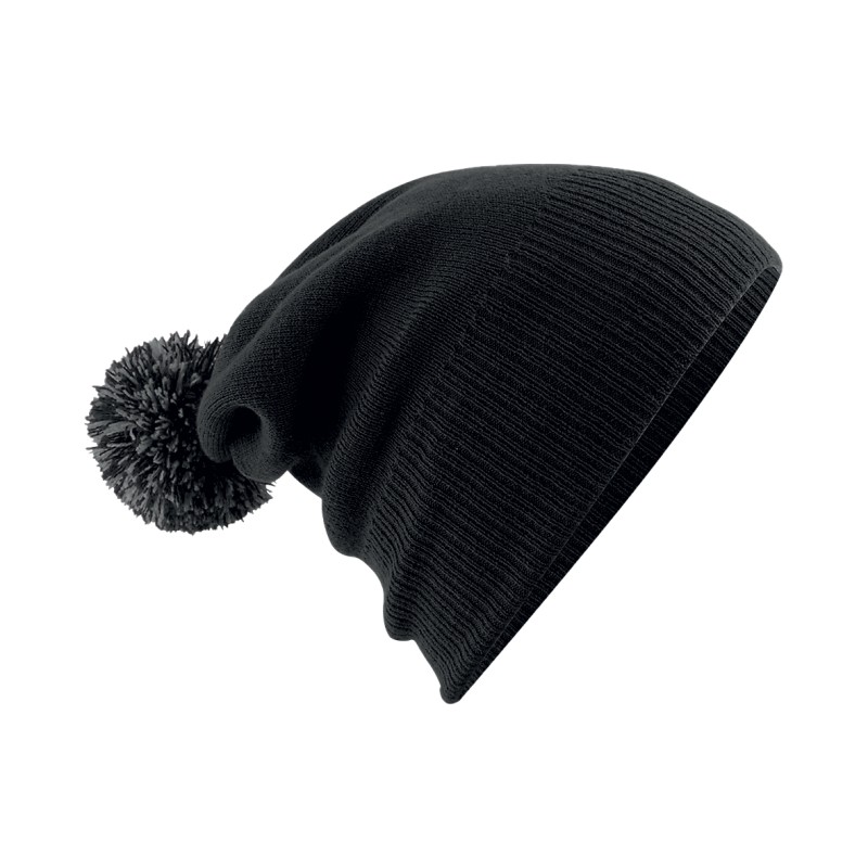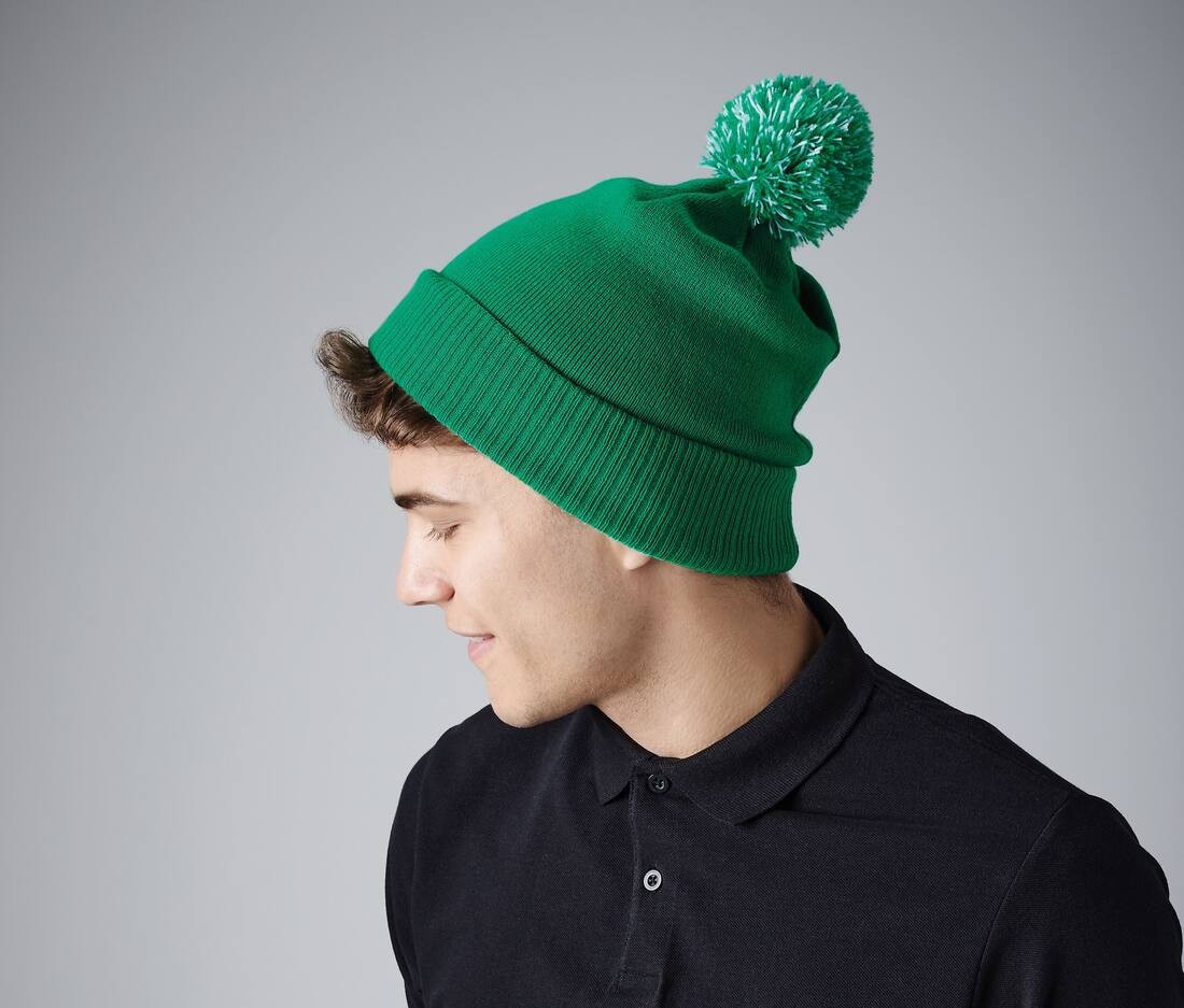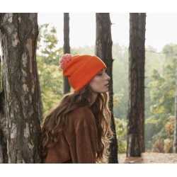 100% Soft-Touch Acrylique | Tricot double couche | Style Dual - Poignets ou larges bords | Pompon bicolore | Manchette côtelée | Étiquette détachable pour faciliter la modification de la marque