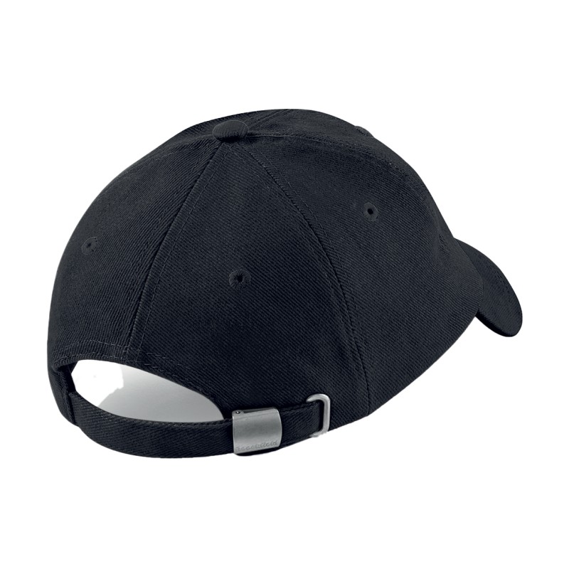Drill 100 % coton lourd brossé | Sangle en tissu avec boucle en argent mat et oeillet | 6 panneaux | Visière précourbée | Trous d'aération brodés