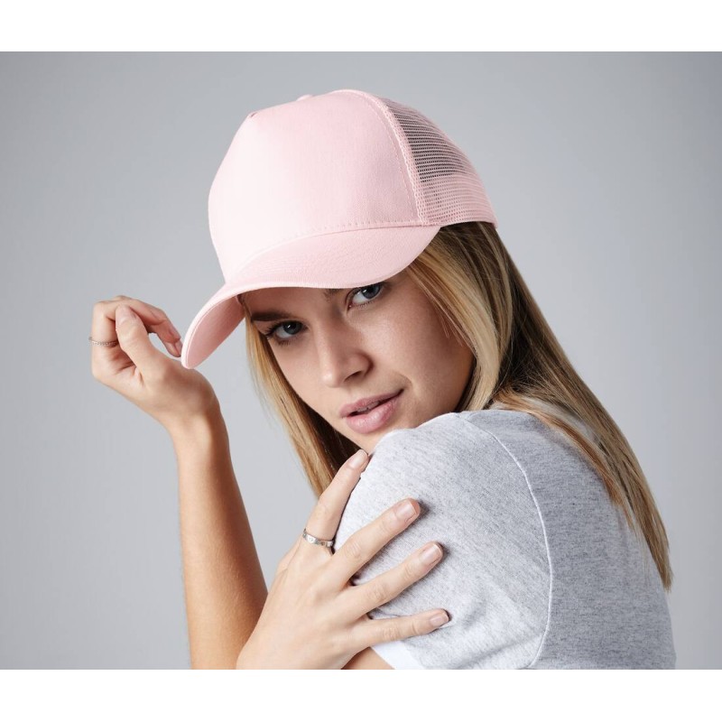 Fermeture en matière plastique à taille ajustable | 5 panneaux | Visière précourbée | Couleurs avec White = front blanc, Visière + Maille colorée