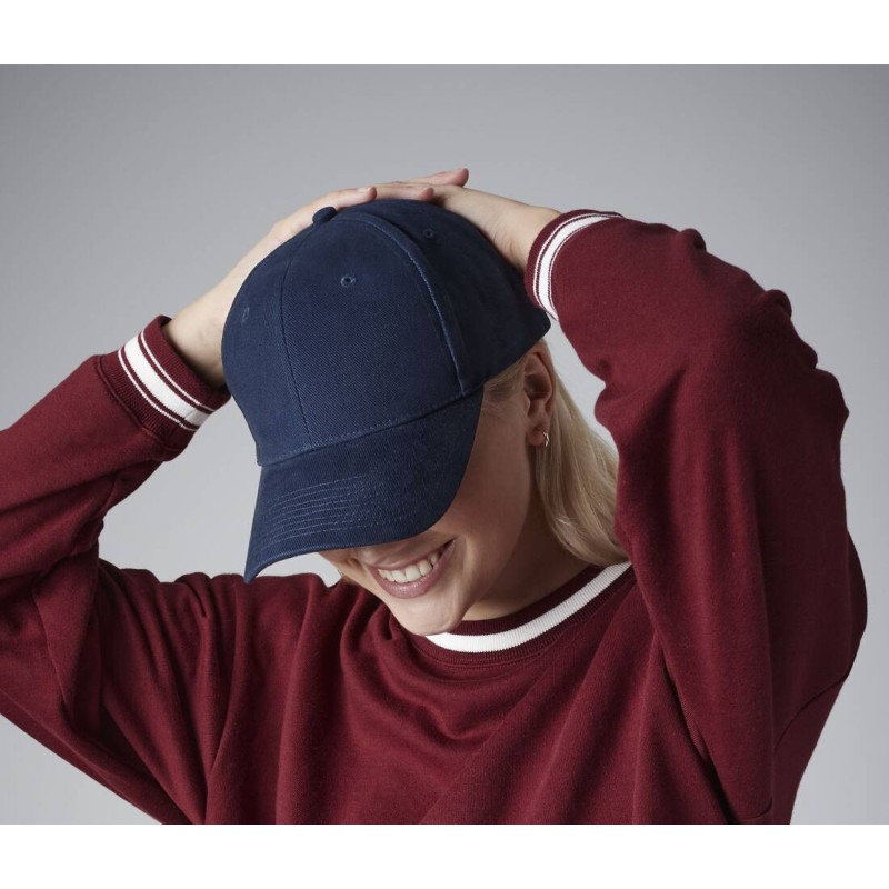 100% coton brossé | 6 panneaux | sangle en tissu avec boucle à triple glissement | Visière précourbée | Trous d'aération brodés
