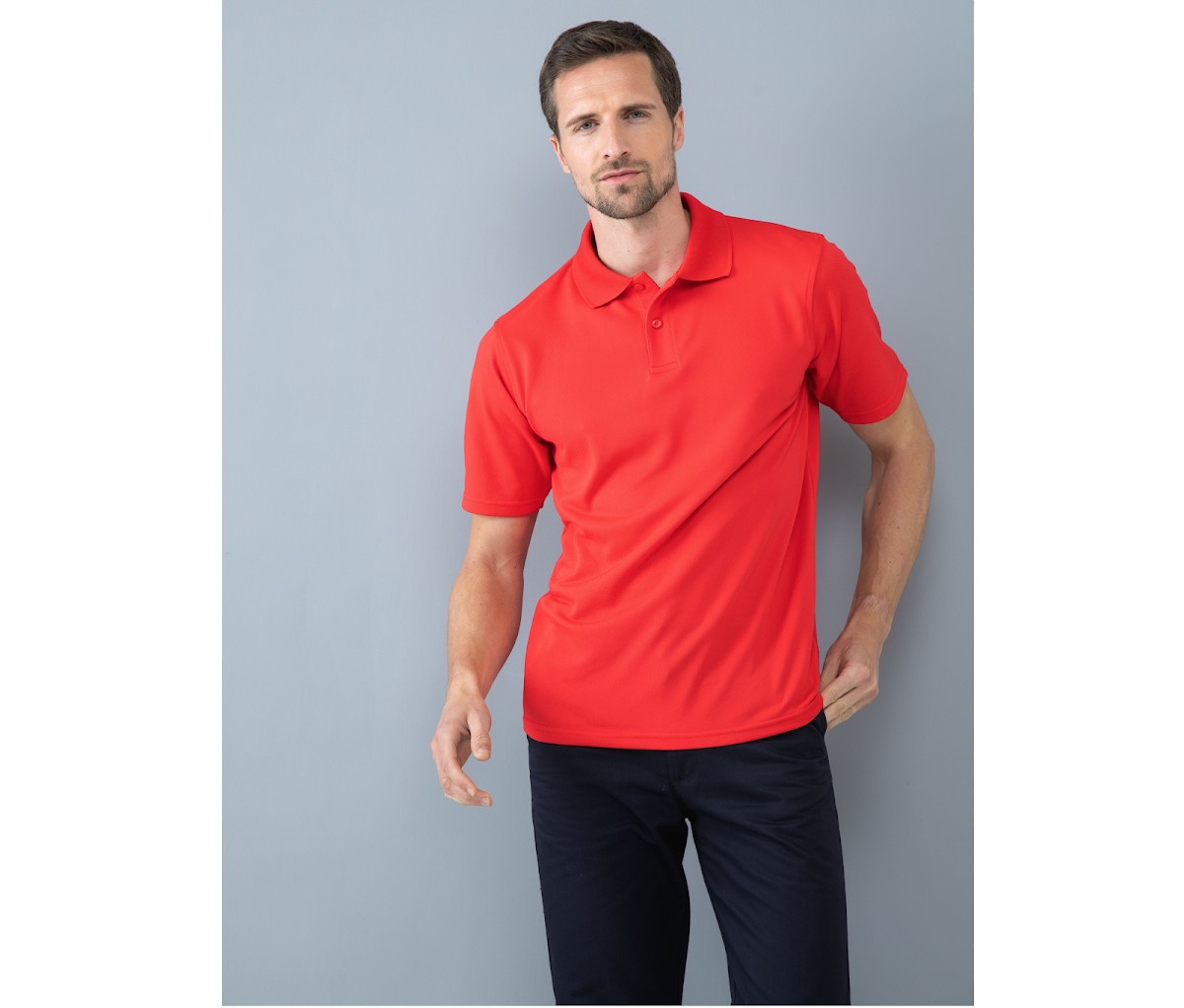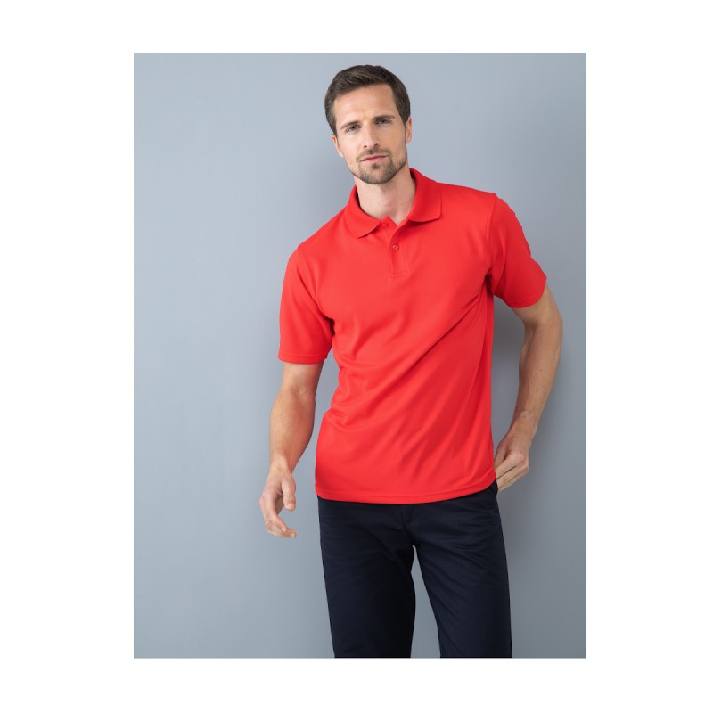 Maille polyester micro piquée respirante Cool Plus®. 2 boutons ton sur ton. Fentes latérales.