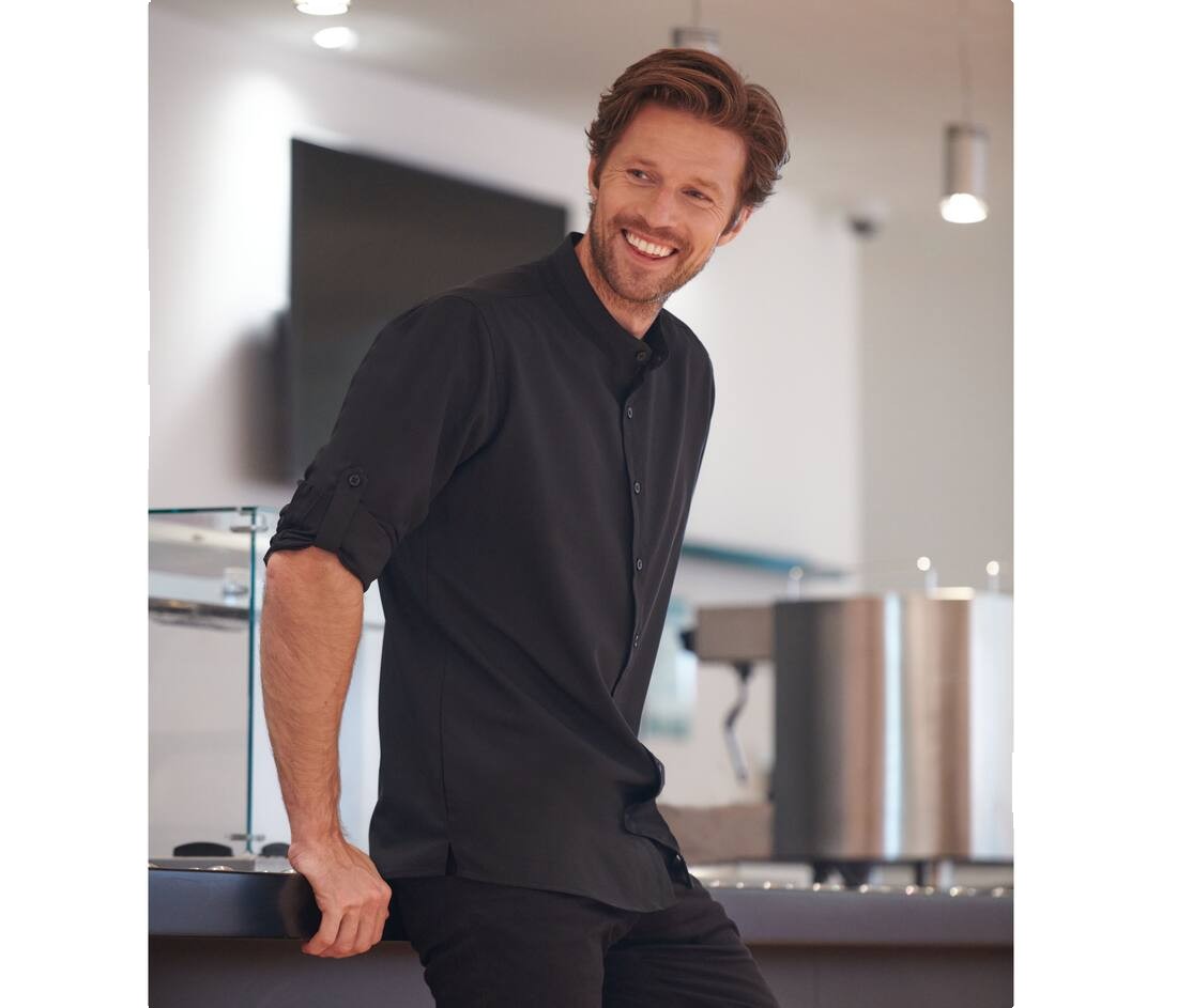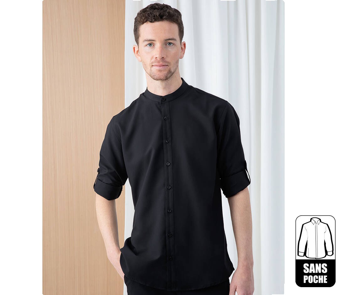 Col mao. Manches retroussables. Technologie Cofrex/Pufy® : infroissable, respirant, sans repassage.