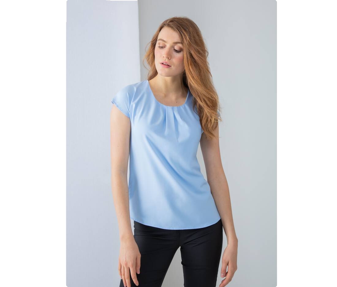 LADIES PLEAT FRONT S/S BLOUSE