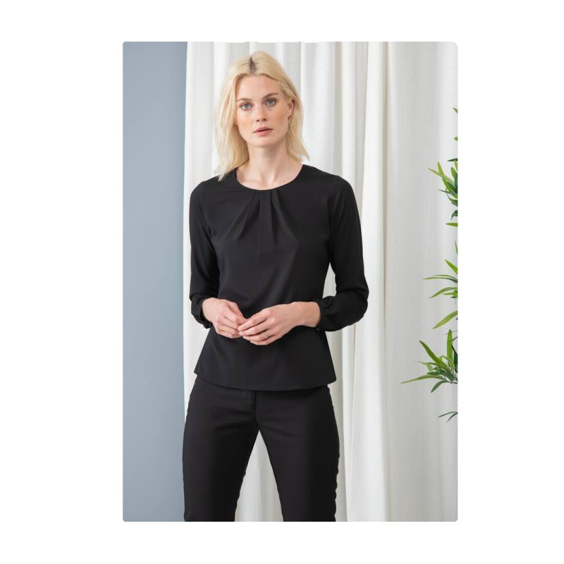 LADIES' PLEAT FRONT LONG SLEEVED BLOUSE
