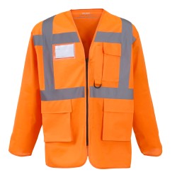 100% Polyester. Rubans réfléchissants de 3,5 cm de large autour du corps, des bras et sur chaque épaule; poche pour téléphone portable / talkie-walkie sur la poitrine à gauche; fermeture à glissière complète sur le devant; deux poches inférieures avec rabats et accessibles du haut et du côté; poches pour stylos et porte-clés; Pochette d'identité sur la poitrine droite; Grande surface au dos pour la décoration. Conforme à la norme EN ISO 20471:2013 Catégorie 3.
