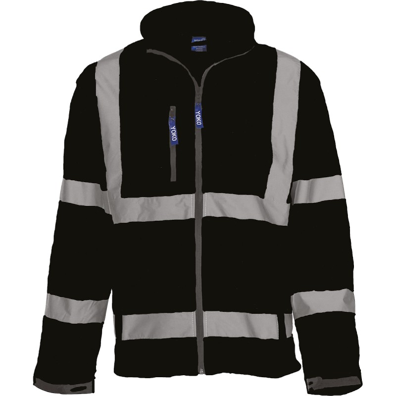 100% polyester. Softshell 3 couches, imperméable 8000 mm. Extérieur 100% polyester. Intermédiaire : TPU imperméable. Intérieur micropolaire. Bandes réfléchissantes de 5 cm de large autour du corps et des bras et une sur chaque épaule. Zips 100 % imperméables. Tirettes avec logo à l'avant et sur la poche poitrine. 2 poches réchauffe-mains zippées. Dispositif de réglage des poignets en caoutchouc et cordon de serrage à la taille. Dos plus long. Conforme à la norme EN ISO20471:2013 Classe 3 : uniquement Hi-Vis Yellow, Hi-Vis Yellow/Navy, Hi-Vis Orange et Hi-Vis Orange/Navy. Également conforme à la norme GO/RT 3279 en coloris Hi-Vis Orange et Hi-Vis Orange/Navy.