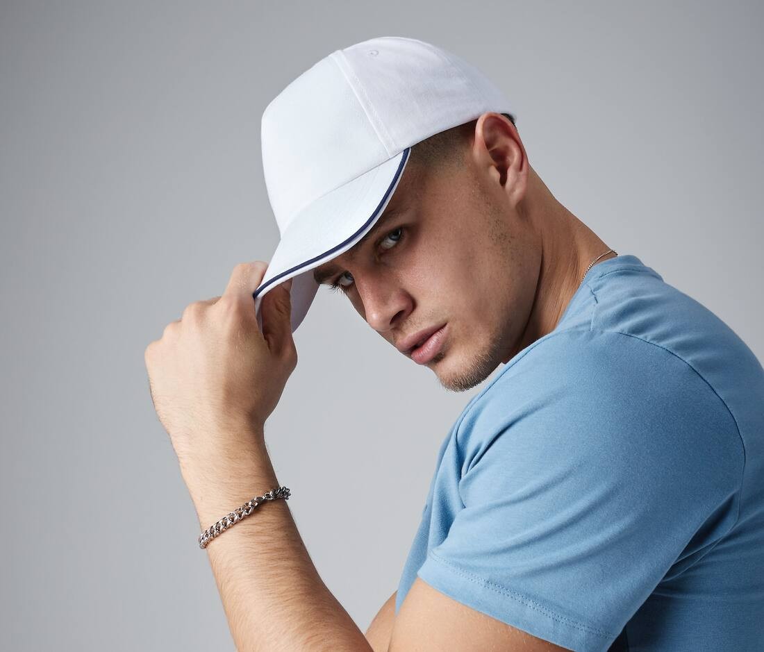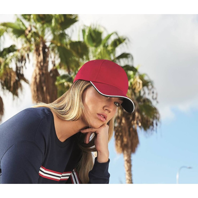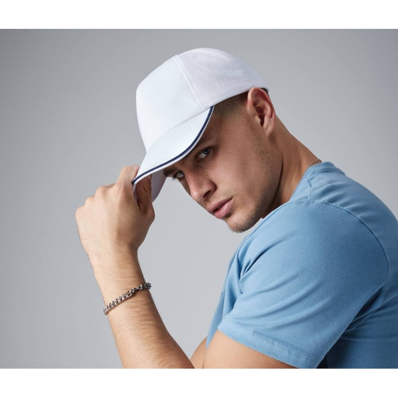 100% Coton Twill - 220gsm | Panneau face avant structuré | 5 panneaux design | Visière précourbée | Bord de pointe passepoilé de couleur contrastante | Trous d'aération brodés | Sangle de serrage par boucle réglable