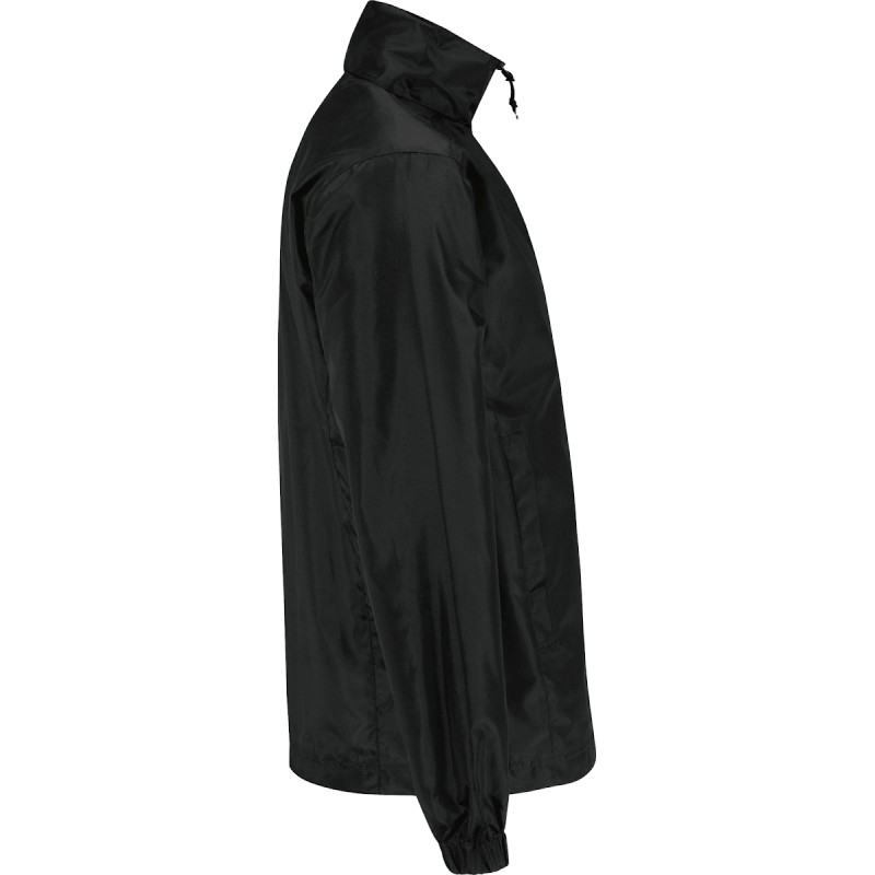 Extérieur 100% taffetas polyester 210T avec enduction acrylique. Doublure corps tricot 100% polyester. Doublure manches taffetas 100% polyester. Fermeture zippée. Capuche dans le col. Col doublé. 2 poches à rabat à l'avant.1 poche portefeuille intérieure. Poignets élastiqués. Cordons de serrage au bas du vêtement.