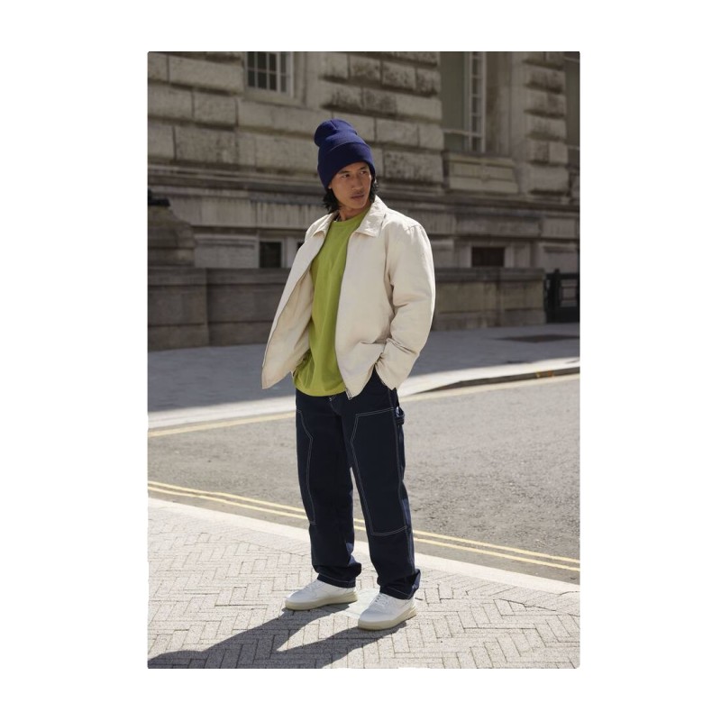 Polyester recyclé en 100% rPET, soit l'équivalent d'environ 1,5 bouteilles post-consommation. Doublé. Avec revers large pour une décoration optimale.