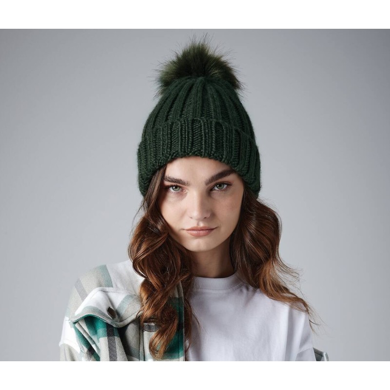 Verbier Faux Fur Pop Pom Chunky Beanie