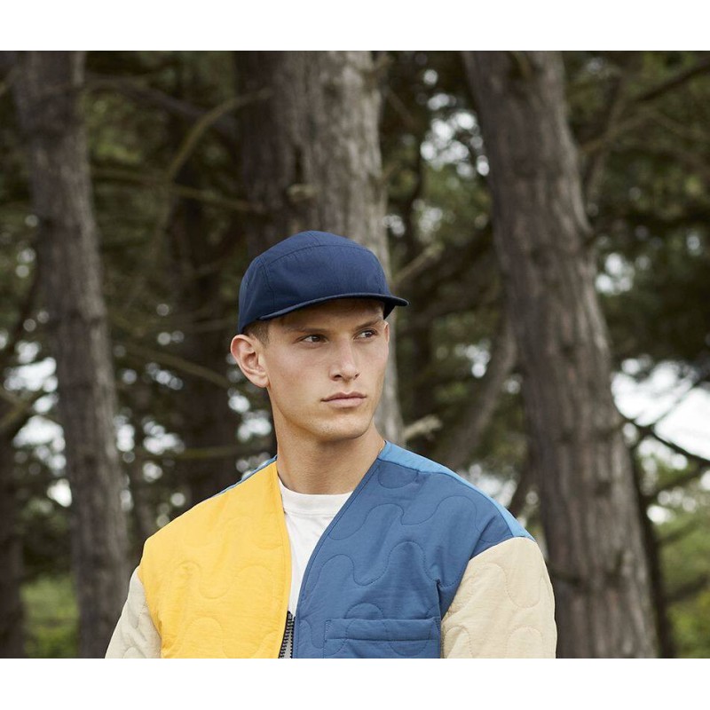 Imperméable à l'eau et perméable à l'air. 5 panneaux. Fermeture par élastique en toile et boucle de serrage discrète.