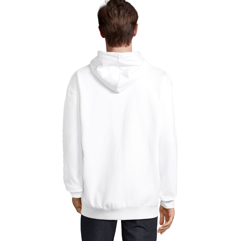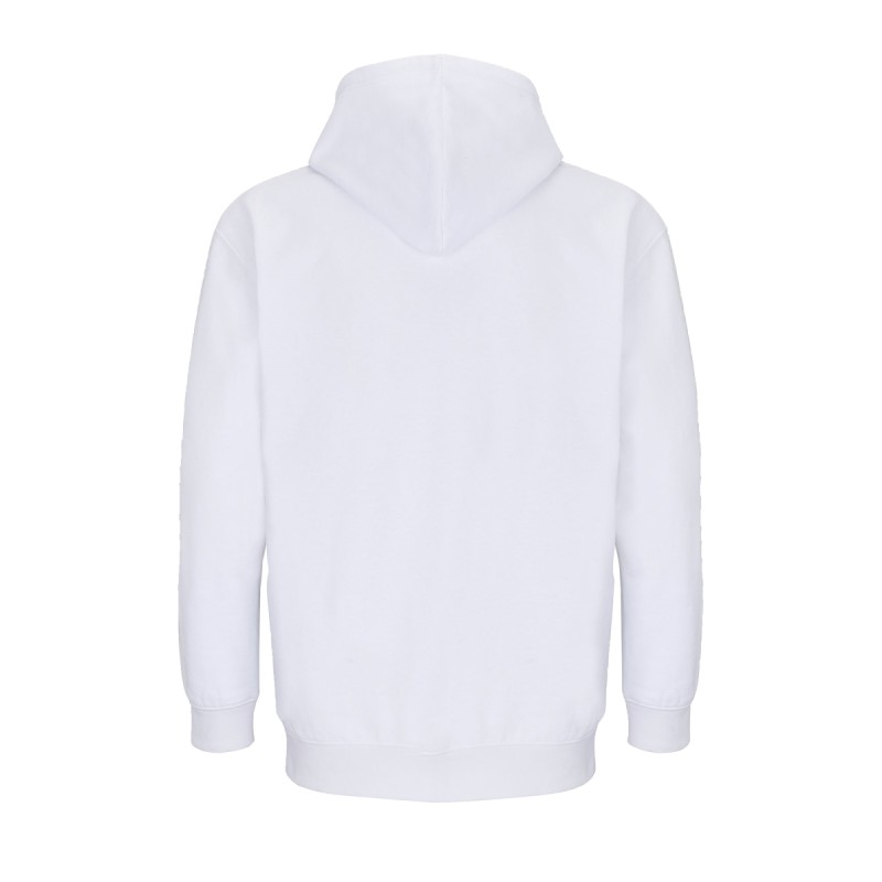 Manches montées Coupé cousu Bord côte 1x1 aux poignets et bas du corps Poche kangourou Capuche doublée avec lacet ton sur ton et œillets en métal Ouverture principale avec zip recouvert Zip plastique injecté ton sur ton avec tir-zip en métal ton sur ton Demi-lune et bande de propreté en jersey dans l'encolure
