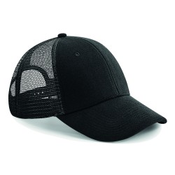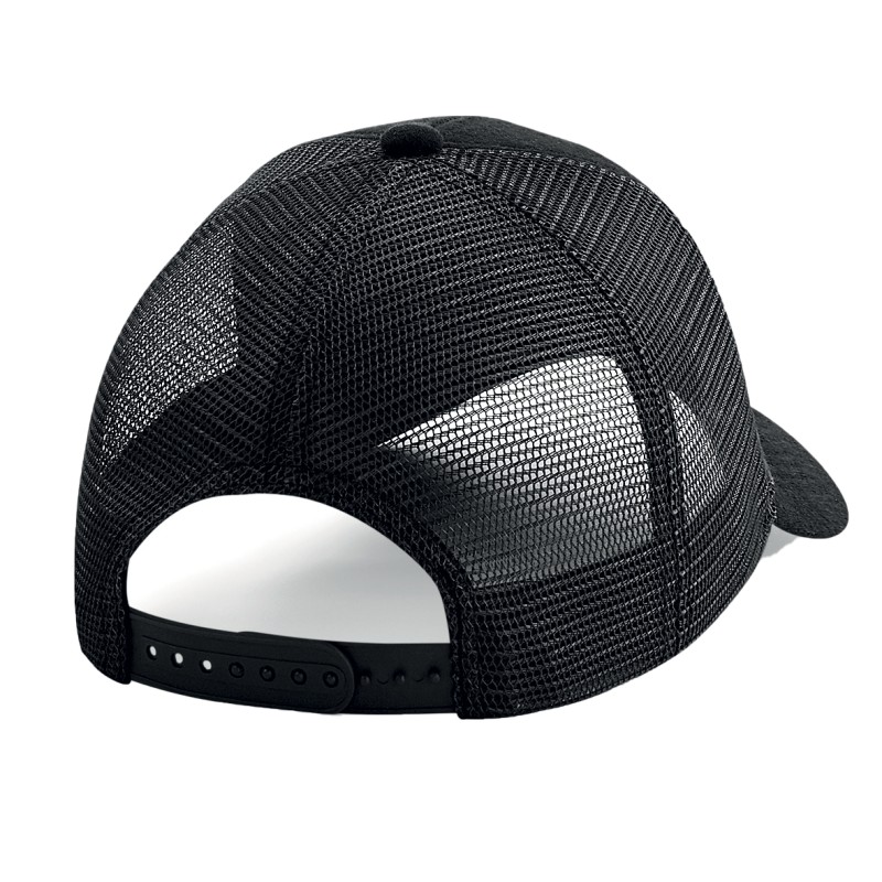 Panneau avant et visière en jersey 100 % coton, panneaux arrière en mesh 100 % polyester | Étiquette détachable | Profil moyen à 6 panneaux | Panneaux frontaux structurés | Visière précourbée | Trous d'aération brodés | Bandeau absorbant en coton sergé et bande intérieure | Ajusteur de taille de relance
