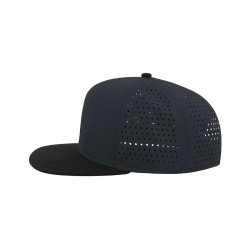 Une combinaison originale de , souple et confortable, et de style street dans cette revisitation du SNAP BACK, casquette rigoureusement avec visière plate et fermeture en PVC.