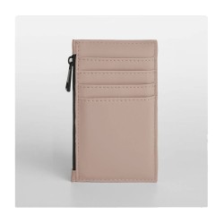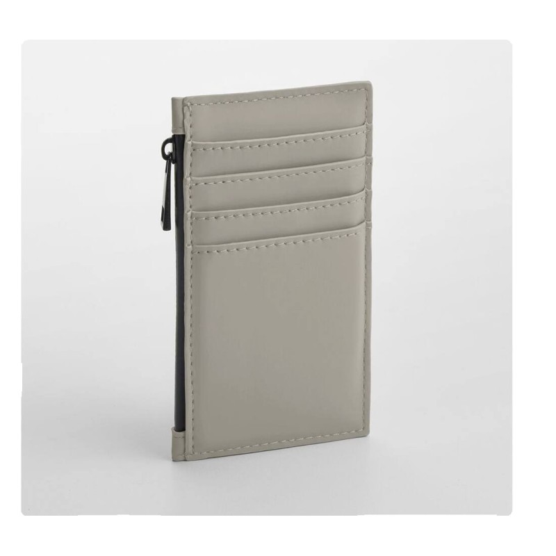 Tissu déperlant. Peut contenir 4 cartes de crédit. Fermeture éclair caoutchoutée.