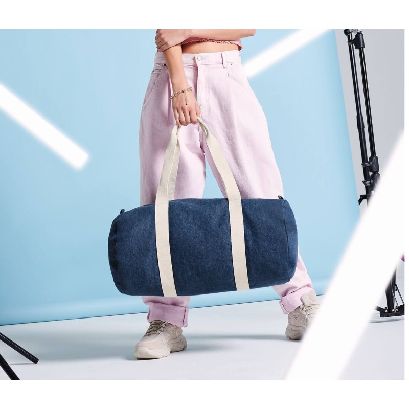 100% coton denim doux | Étiquette détachable pour faciliter la modification de la marque | Compartiment principal zippée | Poignets en coton | Heavy Canvas, peut être porté à la main ou à l'épaule | Livraison sans contenu/décoration