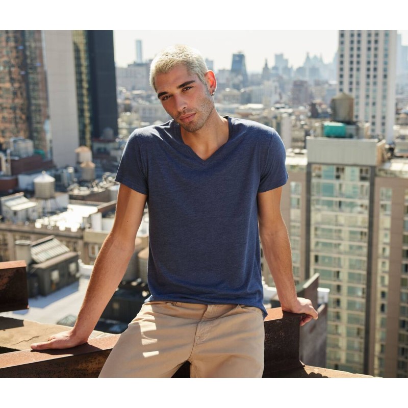 Single Jersey tri-matière 50 % polyester / 25 % coton / 25 % viscose. Col V fin dans la même matière, encolure moyennement profonde. Longueur de corps confortable. Coutures latérales. Renfort au niveau du cou et des épaules. Toucher agréable et ultra doux. Système « B&C No Label » : sans étiquette de marque pour un rebranding parfait.