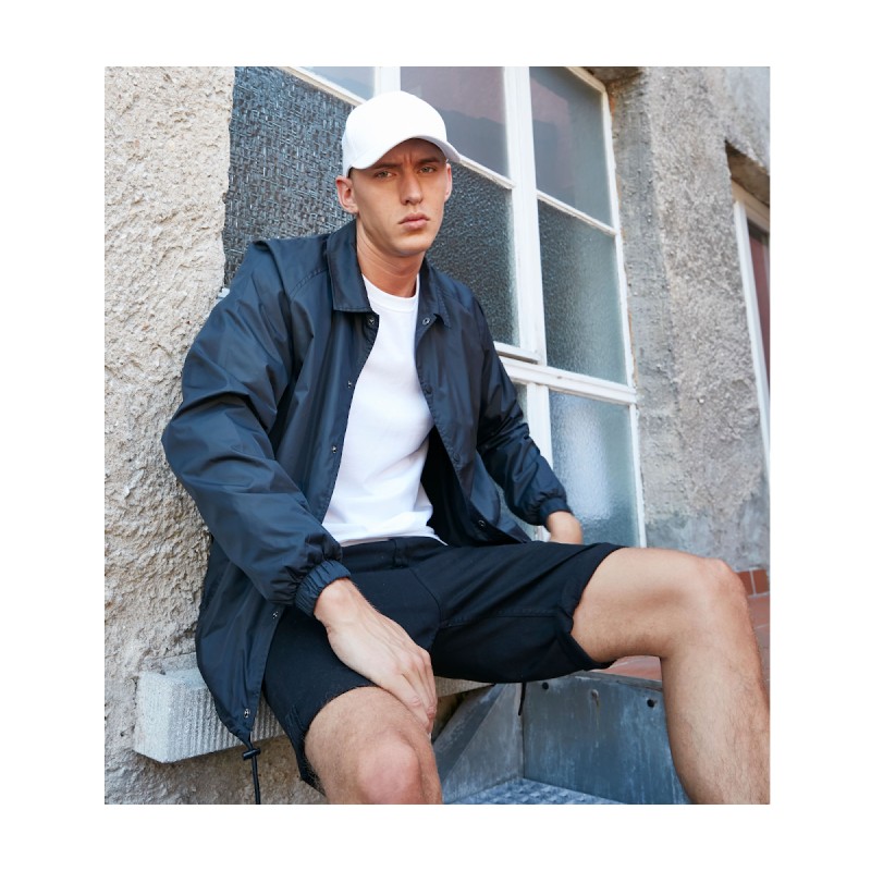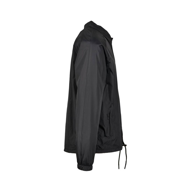 Cette veste Coach sportive plaît avec un design simple et fonctionnel, qui peut être encore amélioré par des coutures, une sérigraphie ou une impression floquée. Sa coupe raglan avec des épaules sans mer en combinaison avec la patte de boutonnage continue ainsi que les poignets élastiqués font de ce joli vêtement une véritable veste de style streetwear. Vous aurez également à votre disposition des poches latérales pratiques et une ceinture élastique avec cordon de serrage et stoppeurs. Le design sophistiqué est complété par un col simple mais élégant. La tige fonctionnelle et robuste est en nylon, la doublure en coton et taffetas.
