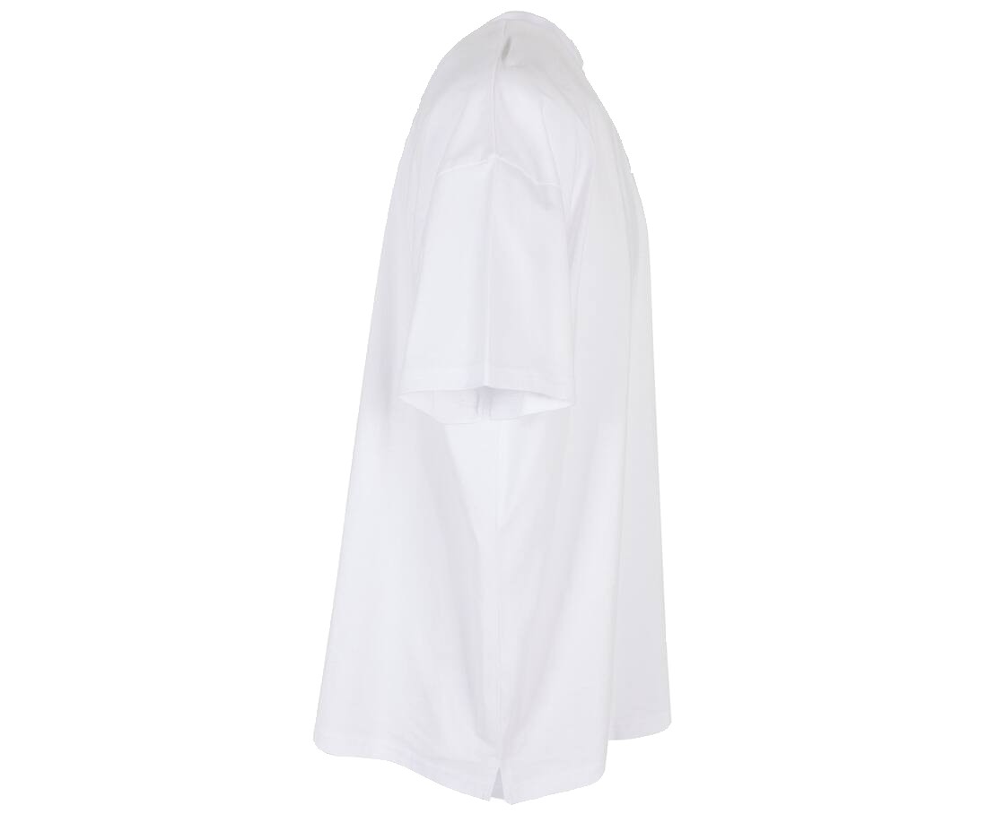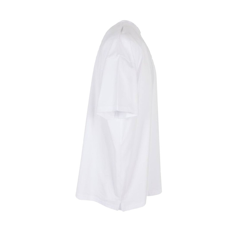 Coupe oversize décontractée. Épaules tombantes. Col ras-du-cou en bord côte.