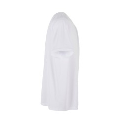 Manches droites. Epaules tombantes. Double surpiqures taille, col et manches.