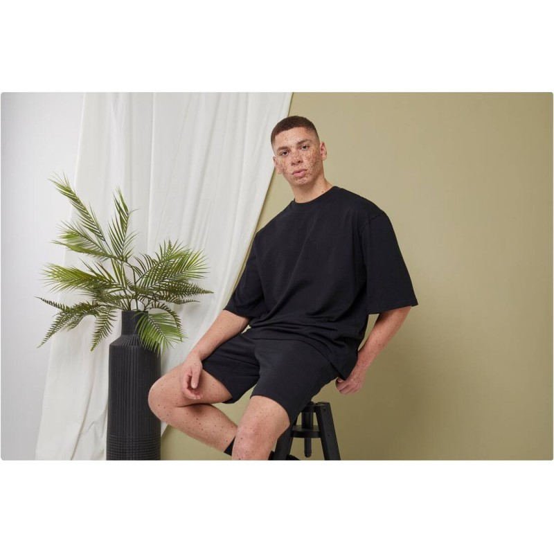 Col rond. Coupe oversize. Manches mi-longues. Épaules tombantes.