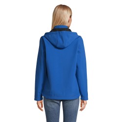 VESTE CAPUCHE SOFTSHELL FEMMEOuverture principale et poches latérales avec zip nylon noir