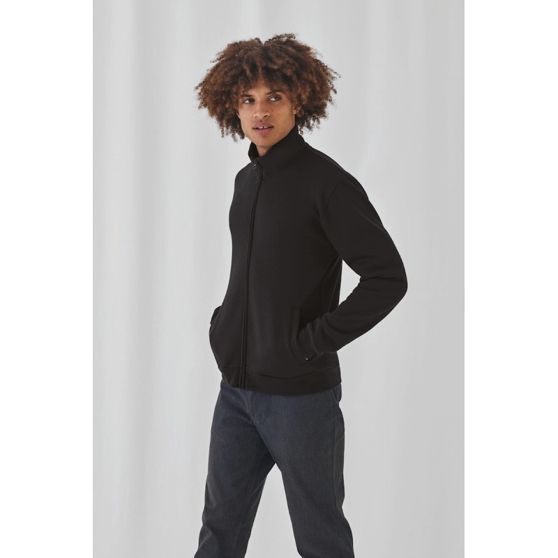 50% coton / 50% polyester. Molleton gratté. Encolure dans la même matière. Bord inférieur et poignets en côte élasthanne 1x1. Double surpiqûres à cheval au niveau des emmanchures. Fermeture éclair passepoilée ton sur ton avec curseur métallique. Fond des poches passepoilées en jersey ton sur ton. Manches montées. Coutures latérales. Modèle unisexe. Système « B&C No Label » : sans étiquette de marque pour un rebranding parfait.
