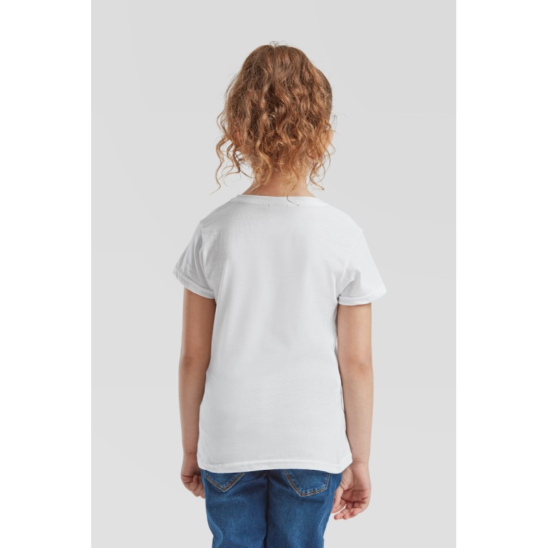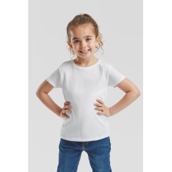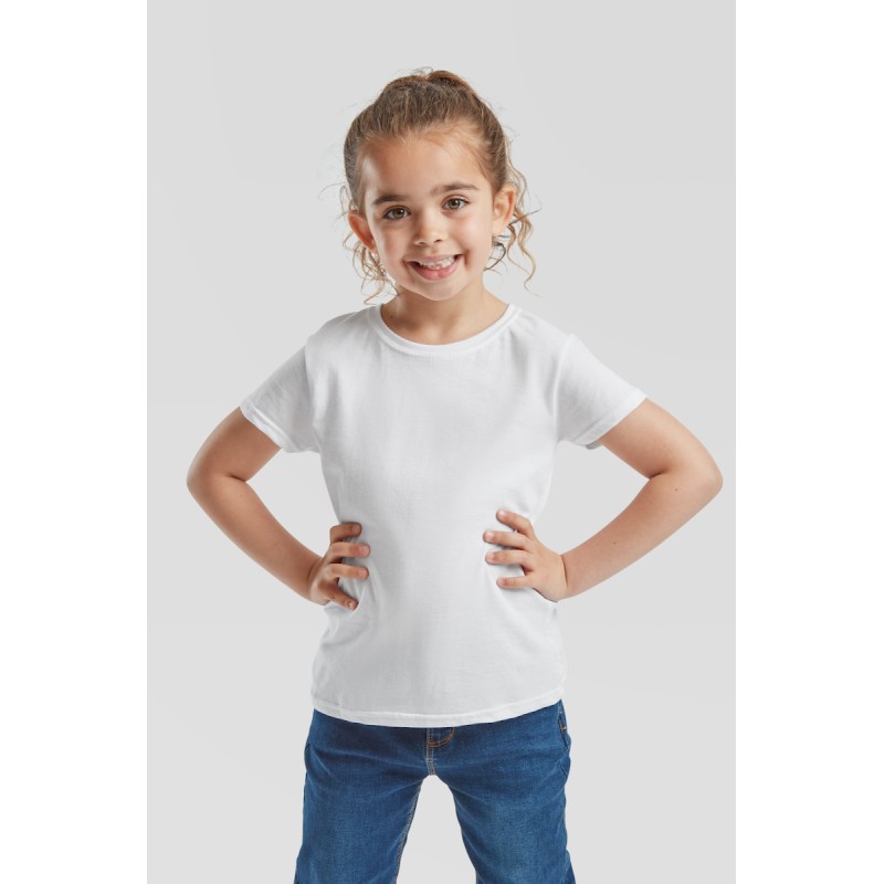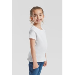 #Ringspun 100% coton peigné#Toucher plus doux#Col rond étroit en bord côte 1X1#Coupe fille avec coutures latérales cintrées#Bande de propreté de même tissu au revers du col#Tear away label (étiquette partiellement détachable)